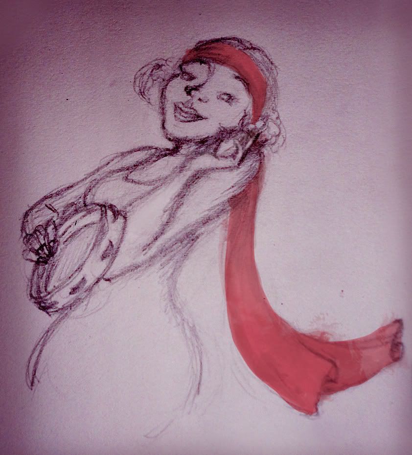 In New Orleans, I had the amazing good fortune of being in town for their famous Jazz Festival, where I got to see some of my favourite acts like Lupe Fiasco and Arcade Fire (who performed Girls Just Wanna Have Fun with Cindi Lauper - it was bizzarre and amazing). I also saw awesome local musicians, here's a quick sketch of a crazy-good tambourine player from the fabulously named Kermit Ruffins and the Barbecue Swingers.