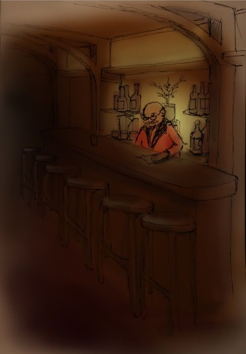 I loved this restaurant my Uncle and Aunt took me to on Hollywood Boulevard. Musso and Frank Grill was one of the first restaurants in the area and remains almost exactly the same as it was when it opened in 1919. The menu is the same, the decor is the same, and I think some of the staff are the same. It's dark, mahogany-filled and makes you feel like you're in The Godfather. Here's a quick sketch of the bar.